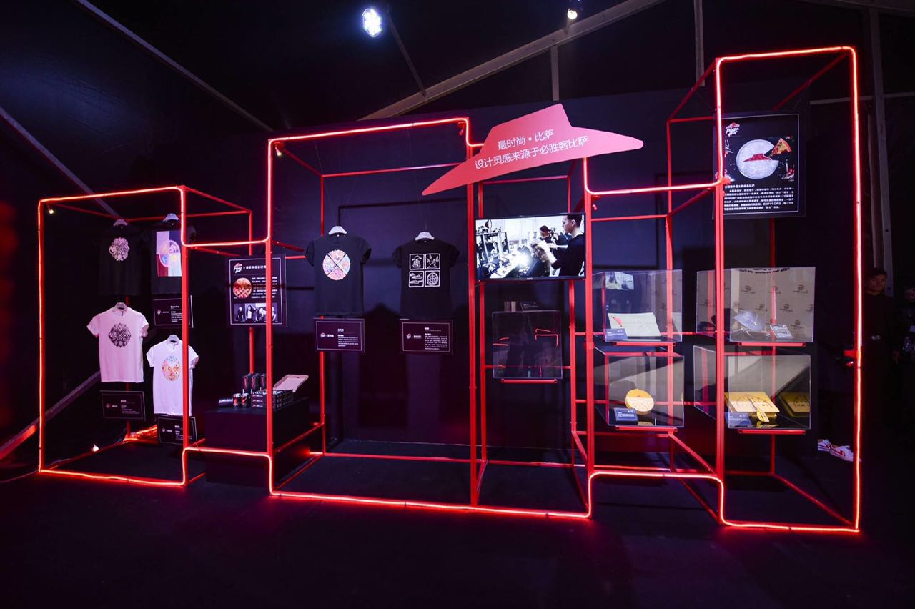 除了新设计以外,必胜客的展览还有去年与“WHERE WHAT WHO”、施华洛世奇等品牌合作联名款的回顾。为了体现必胜客的科技感,它还把点餐机器人搬到了秀场和展览上。