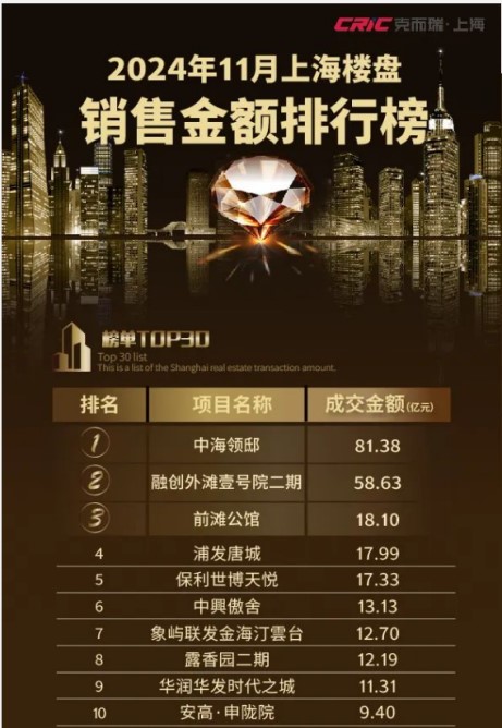 2025开年爆点,非“哪吒”莫属!从大年初一上映以来,《哪吒2》一路高歌猛进,票房突破百亿,登顶全球影史单一市场票房第一!强大的票房号召力背后,是市场对所有匠心之作的高度认可。销售金额/销售面积/销售套数三项指标均荣登11月上海楼盘排行榜TOP10。(数据来源:克而瑞新房销售榜单)
