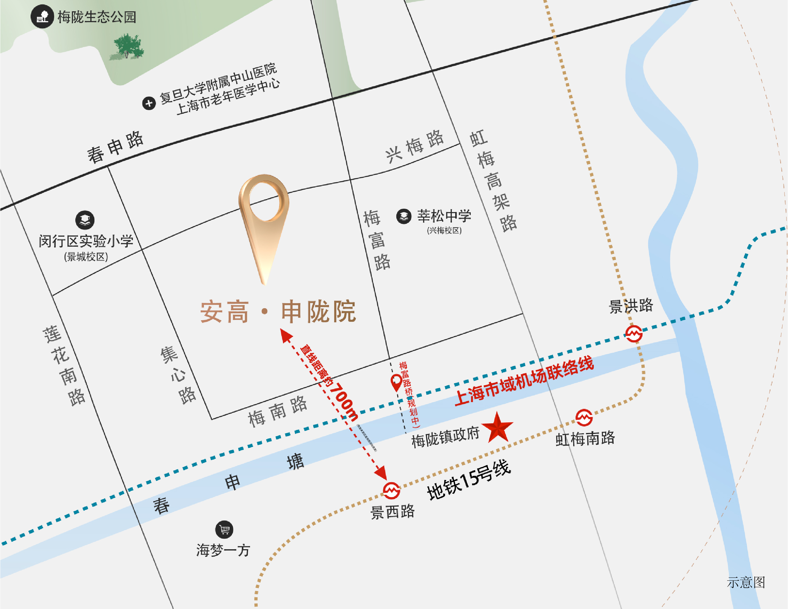 离医院近一点,距健康多一分。安高·申陇院优享华东医院(闵行分院)、复旦大学附属儿科医院、复旦大学附属中山医院闵行梅陇院区(在建中)等优质医疗资源,为居者身心健康保驾护航。