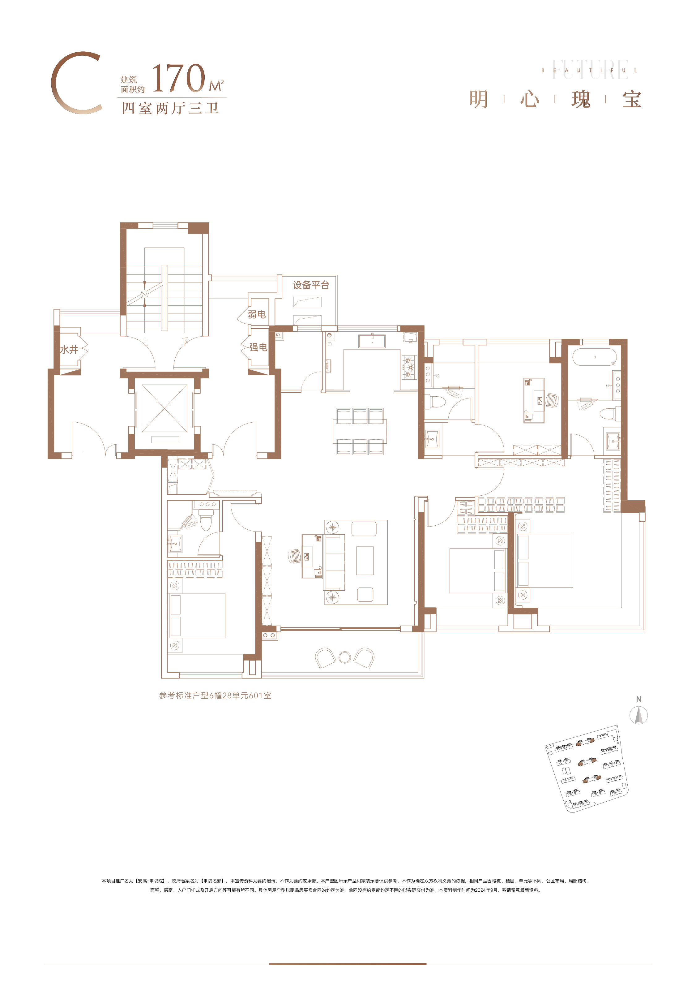 安高·申陇院心院170户型,采用LDBK一体化设计,最大程度发挥约15.4m朝南四开间的超宽优势,打造“零”走道的飞机式户型。另一个亮点在于南向双套房的独到设计,兼顾空间感与独立性,其中边户同时享有270°全景飘窗与270°转角大阳台,赋予居者IMAX级的阔绰视野,尽揽社区美景。