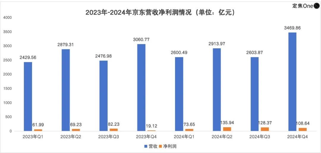 直到2024年8月26日,京东在全国20余地上线以旧换新的国补活动,这部分收入才有所恢复。加上双11大促,通电类商品收入的增速在Q4达到15.8%的新高。有商家告诉「定焦One」,现在很多渠道都有国补,京东的优势是用户心智和自营电商的集中管理。