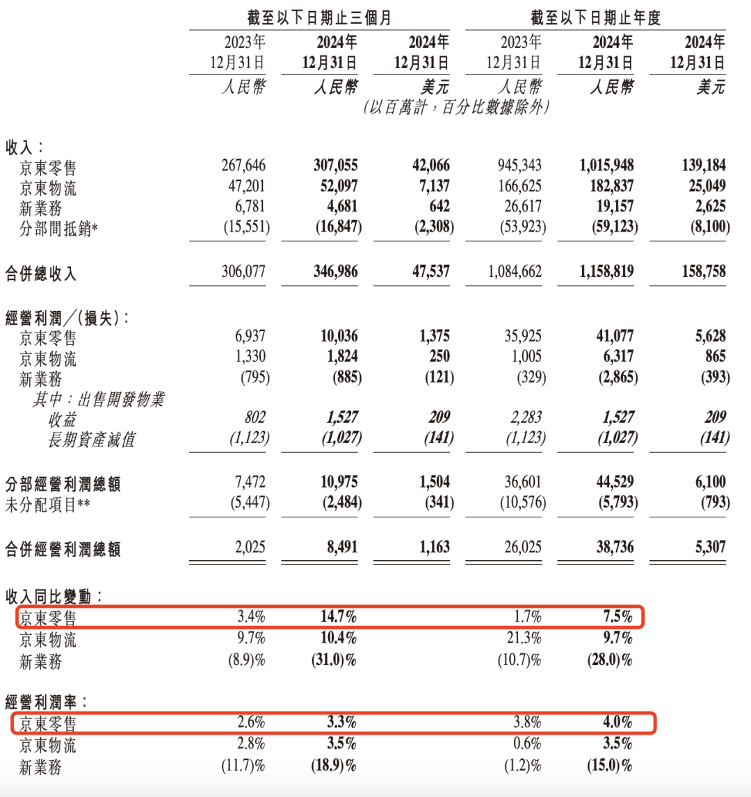 实际上,这份“喜报”来得并不突然,背后是京东在2024年稳住了3C数码家电的基本盘,同时减少对亏损业务的投入,并在行政开支上进行严格控制。
