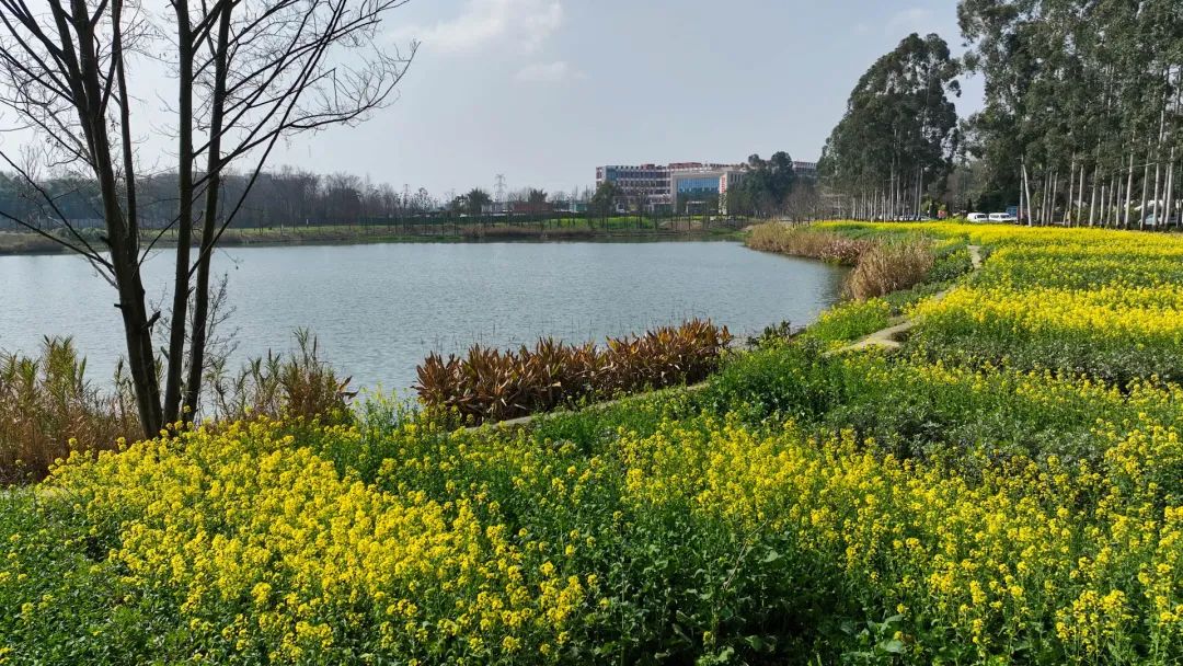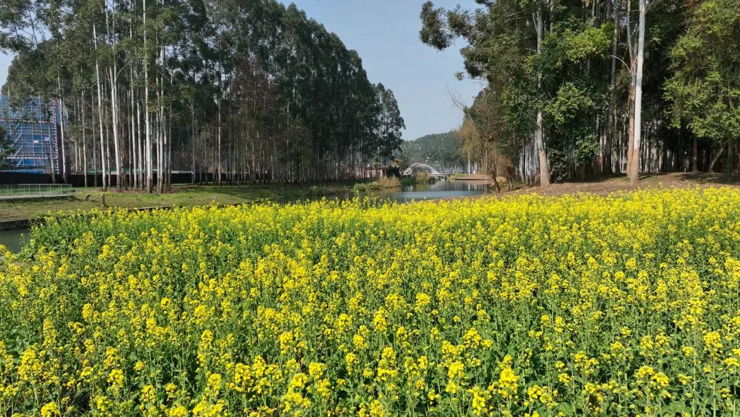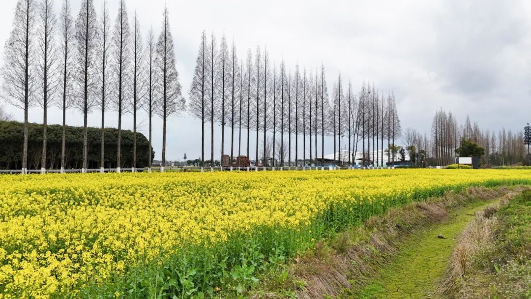 眼下,这里的油菜花正开得热闹,公园内成排高大整齐的树木也很惹眼,比较出片。