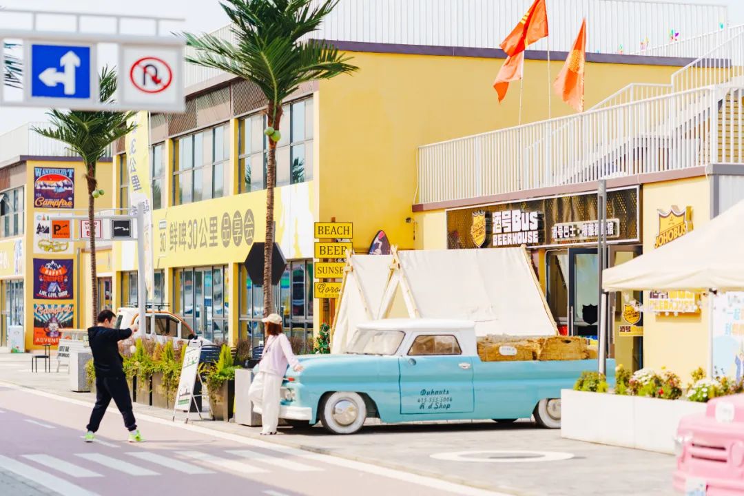 这里不仅有花海,还有丰富多元的游玩项目。其中,爆火的田野音乐街区是必打卡之处。你可以与糖果色集装箱、复古汽车、马卡龙色路牌等“多巴胺”风格场景拍照,随手一拍就是大片感!