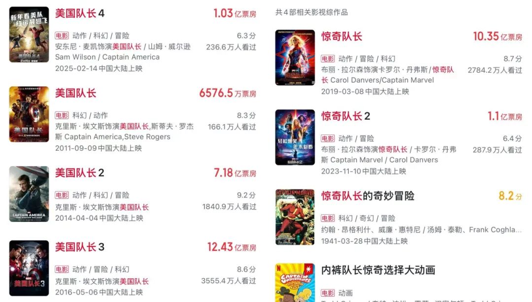 进口片方面,来头最大的《美国队长4》刚刚破亿,仅比2011年的《美国队长1》票房高,扑街程度与《惊奇队长2》在同一级别,正式宣告漫威电影在国内失去了任何光环。