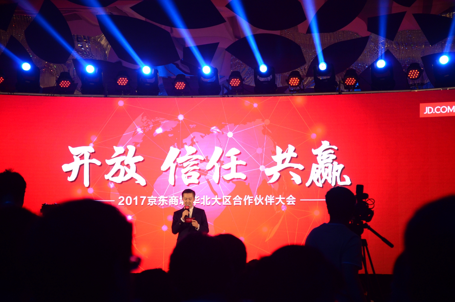 4月11日,在京东商城华北区合作伙伴大会上,京东集团副总裁、京东商城华北区域分公司总经理邵继伟介绍未来物流开放更多的资源支持。