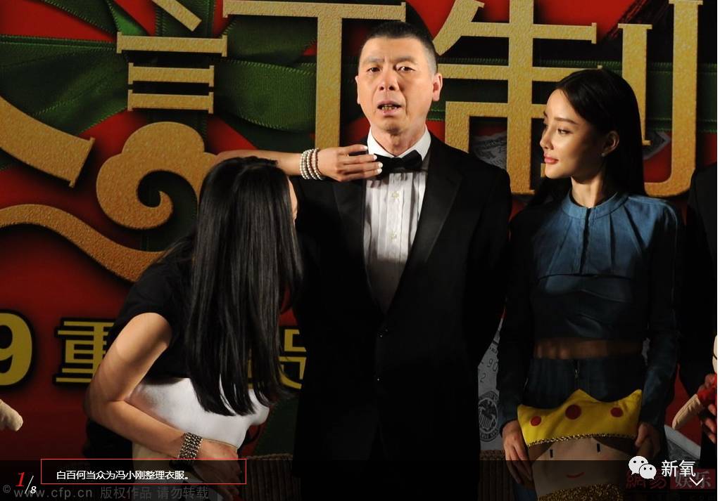 有人就说她很会来事,比如:在《私人订制》发布会现场,当中给冯小刚整理衣服。