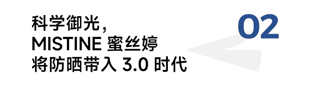 而如今,MISTINE蜜丝婷正式将防晒带入以“光生物防晒”为核心的3.0时代,利用具有光吸收或转化作用的生物活性物质来实现对光造成的皮肤生物学效应的防护,标志着防晒从“被动防御”迈向“主动修护”的新阶段。