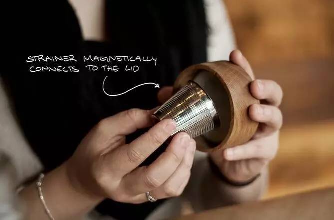 所以, Imbue 把半封闭的泡茶滤网安装在杯盖上,在刚刚冲水的时候,你可以倒置杯子,让其茶叶充分浸泡。