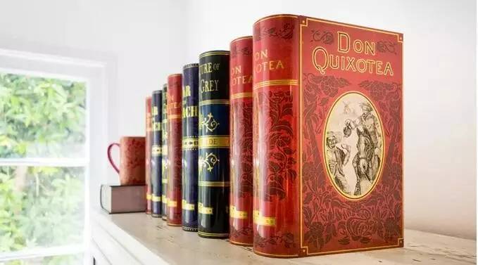 在 NovelTea Tins 这里,它首先是一系列好看的茶罐。其次,为了让它更有特色、更容易被人们记住,它选择在图样上复刻了经典的英国小说,用现在的话来说,就是一些大 IP,并且在整个造型上也像设计的像一本书籍那样。