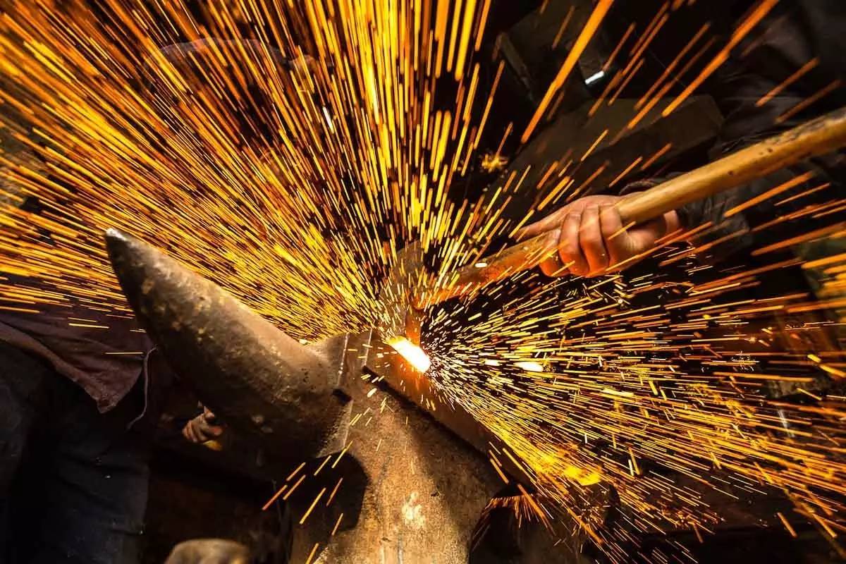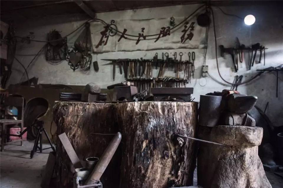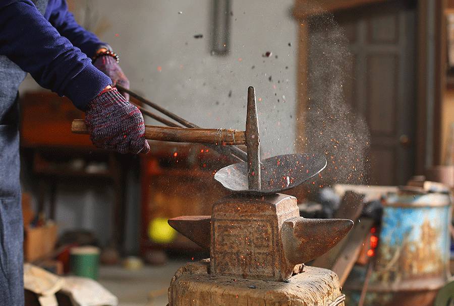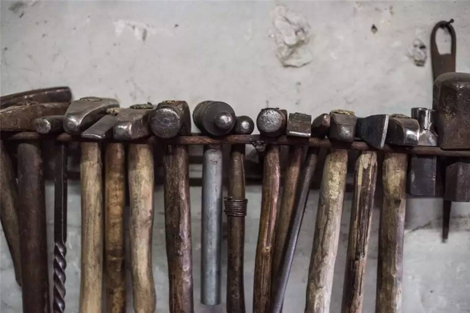 “年轻时拜师学艺,我师父让我拉了三年的风箱。就在一旁看着,不许动手锤铁。三年后才开始正式学习如何捶打铁块。”