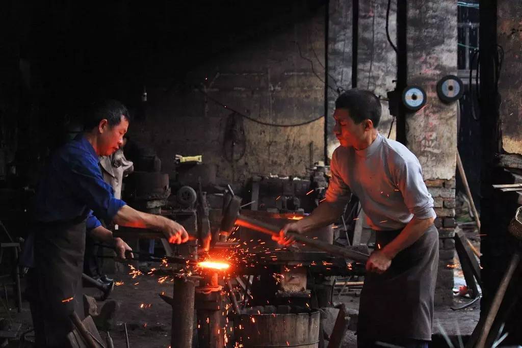 即便是打造一把普通的菜刀,也要经过10多道工序。这其中,淬火可以说是打铁过程中的关键技术,可以大幅提高钢铁的强度、硬度、耐磨性以及韧性等。