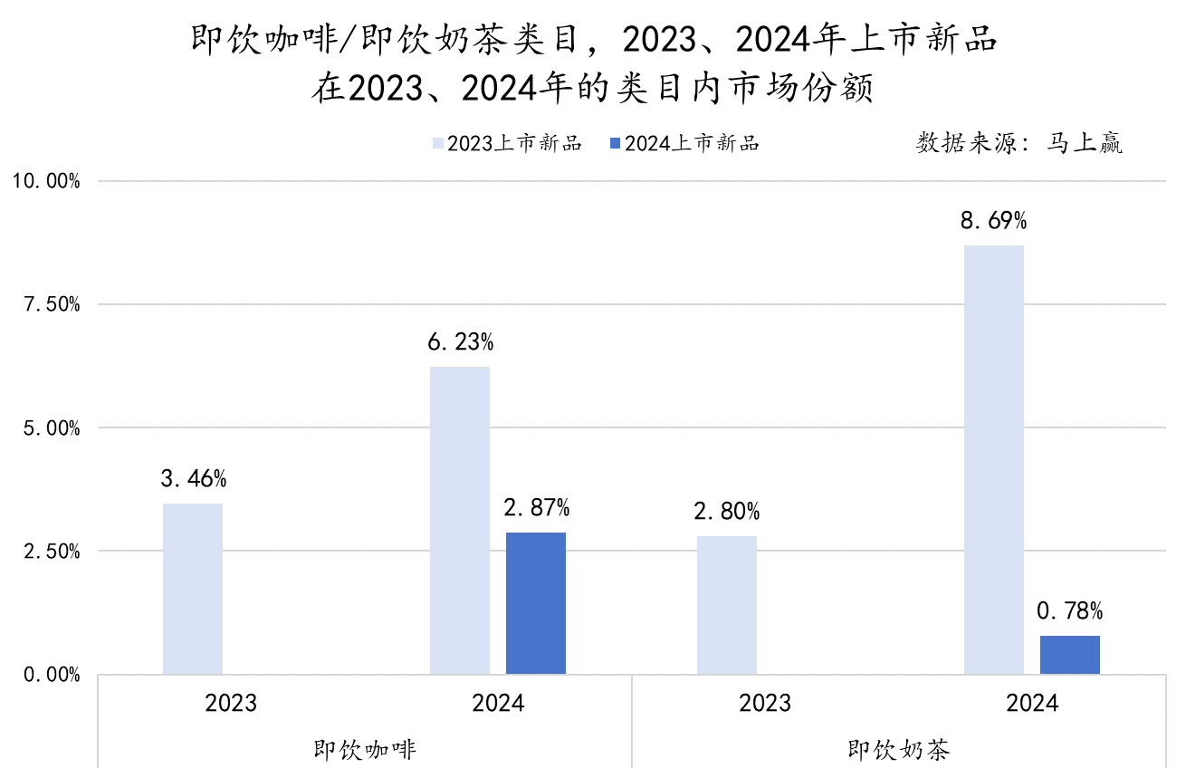 从 2023、2024 年两年即饮咖啡和即饮奶茶的新品市场表现来看:
