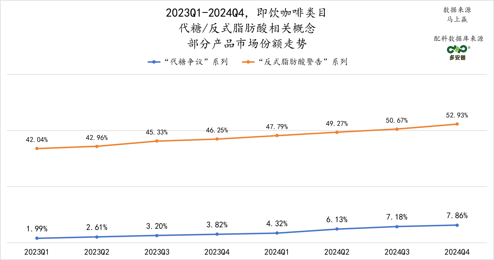- 含有“反式脂肪酸警告”系列原料的产品,其市场份额长期超过80%,且呈现出一定的上升趋势;