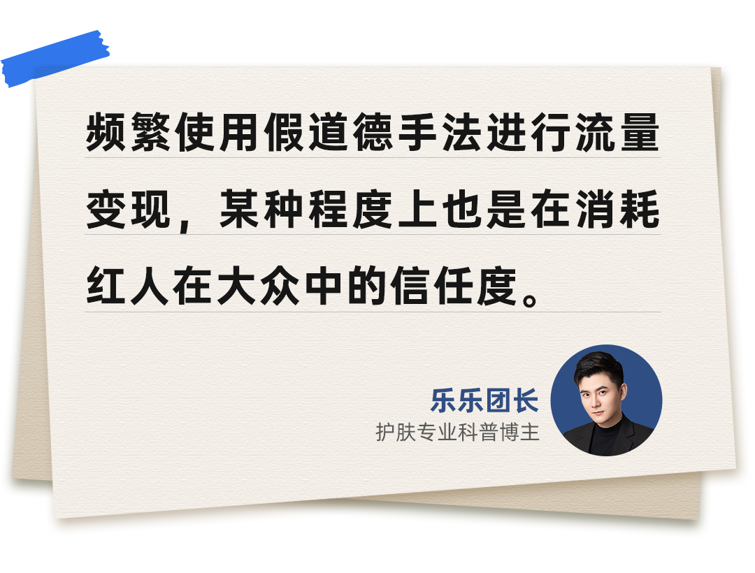 乐乐团长还强调,一旦博主以博眼球、流量变现进行商业碰瓷,虽说短期内能获得粉丝量的提升,但因披上打假旗号,或是“揭露行业机密”的方式,树立正义、科学的人设而快速吸粉,此行为绝非是其在行业长期立足的路径。