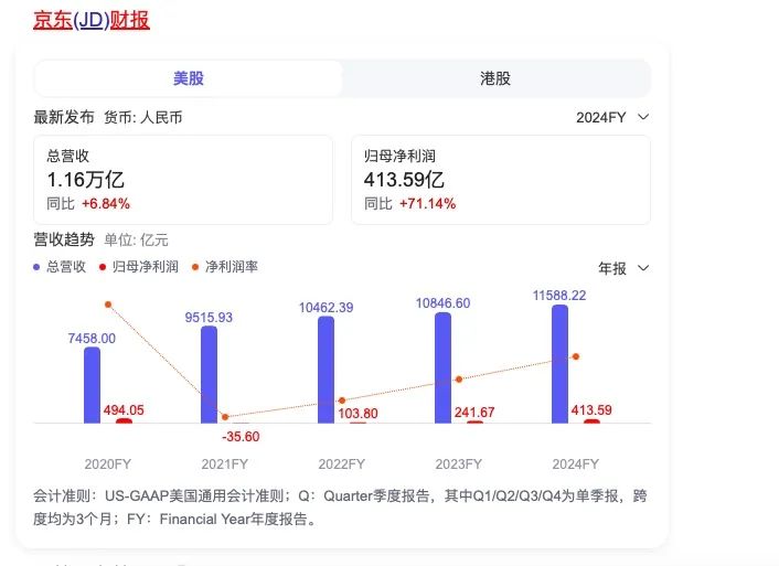 近日,京东发布2024年财报,成绩斐然:全年营收11,588亿元,同比增长6.8%,归母净利润为414亿元,同比增长71.1%。