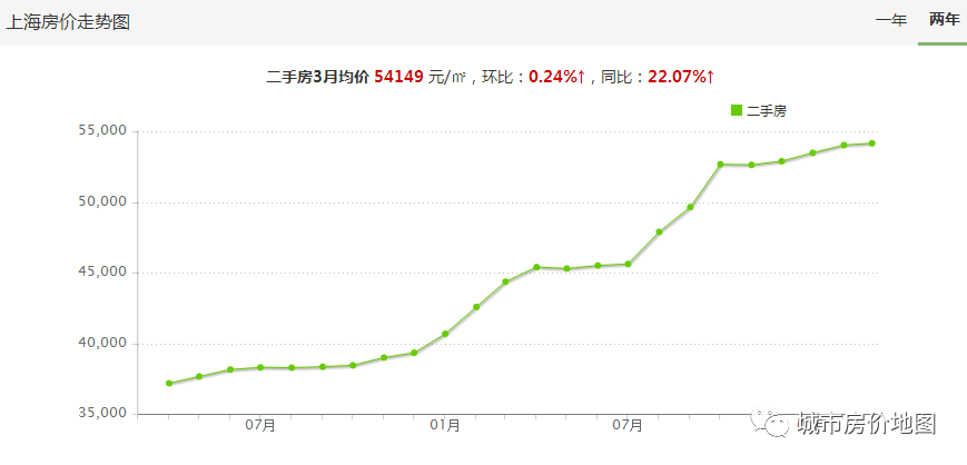上海二手挂牌均价2年走势图