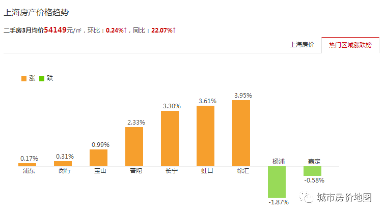 3月上海热门区县二手房涨跌榜