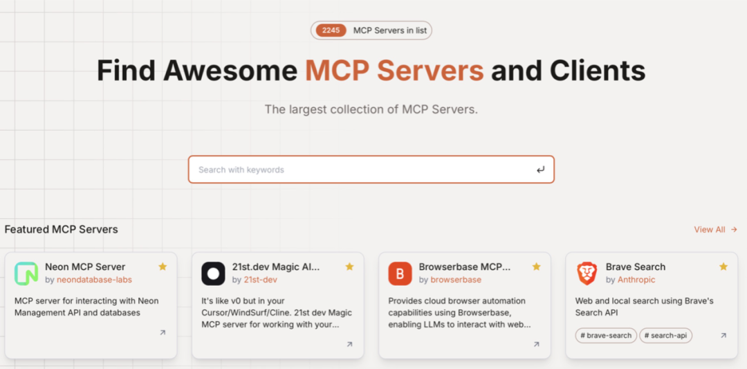 二是社区用例的增长。Github上有不少社区和个人开发者开源了自己的MCP Server,很多写好的MCP Server可以复用,甚至像Cline这样的AI编程插件还推出了MCP Marketplace的类「App Store」第三方商店,诸多开发者也推出了「MCP」目录导航站,比如独立全栈开发者艾逗笔做的「http://mcp.so」、Smithery MCP等,一个MCP的外部分发生态正在形成。
