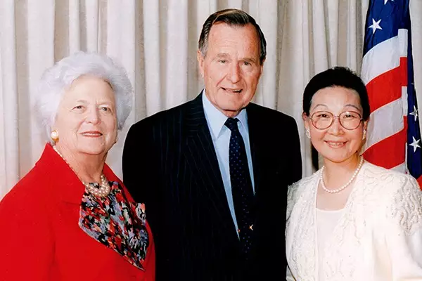 ▲方李邦琴与美国前总统老布什及夫人芭芭拉合影