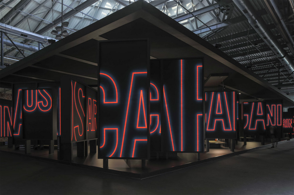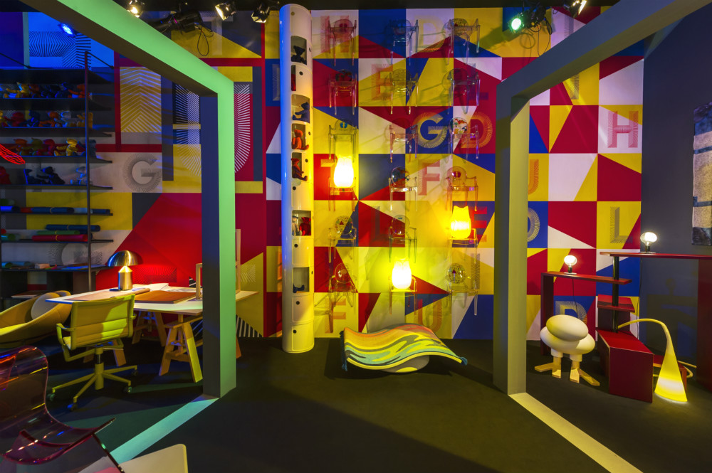因此在米兰,设计师们对大型装置的偏爱显而易见。在由意大利权威家居杂志Interni策展的米兰大学设计周主展区,咖啡品牌illy做了一根伸向天空的钢铁摇臂,LVMH集团旗下的美妆品牌集合店丝芙兰也来凑了热闹,它的黑色标志在巨大的口红和镜面装置旁十分显眼,成为了最佳拍照地点。
