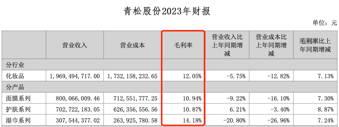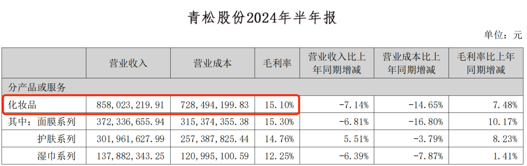 2021年至2024年上半年,青松股份的化妆品毛利率分别为10.44%、4.92%、12.05%和15.10%,2022年,毛利率甚至跌至5%以下。