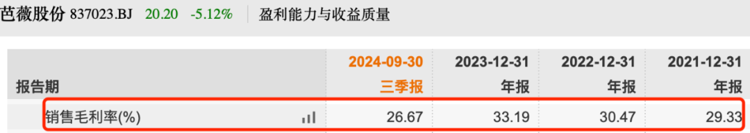 例如,芭薇股份主营化妆品ODM/OEM代工,覆盖护肤、彩妆、洗护等品类,2023年在北交所上市。2021年至2024年前三季度,芭薇股份的销售毛利率在30%左右,2023年达到33.19%,高于青松股份的毛利率水平。