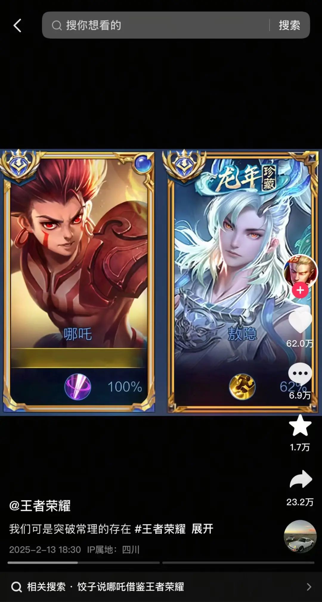 《哪吒2》票房破百亿不久,王者荣耀官方抖音释出两张“敖隐X哪吒”同框图片,瞬间点燃网友期待和吐槽的两极。