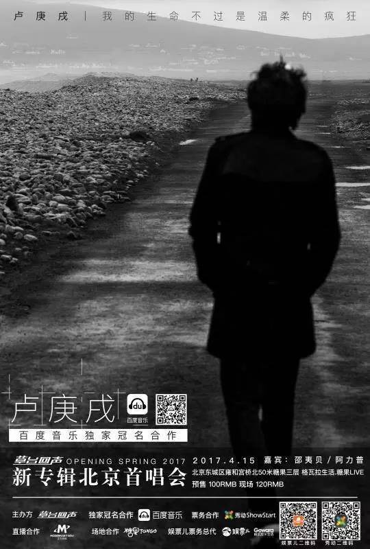 4月15日,卢庚戌冠着“民谣新人”的身份举办新专辑北京首唱会,把他的首张个人专辑《我的生命不过是温柔的疯狂》吟唱给所有人。同时特邀维族唱作人阿力普和民谣女声邵夷贝担当嘉宾,这次,他终于把挚爱的诗歌和音乐完美融合,而我们也需要一次这样的聚会,来聆听真正的灵魂音乐。