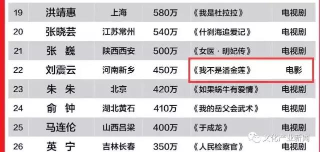 如果是一份严谨的榜单,那么在类型的划分上是不是得有一定的统一性?很明显,电影和电视剧的编剧稿酬标准是不同的,但是,在榜单所例举的30位上榜编剧里我们看到了编剧刘震云老师,例举的代表作是电影《我不是潘金莲》,这作何解释?
