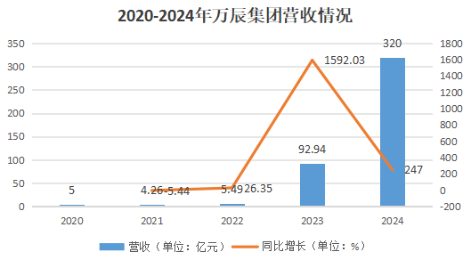 从业绩表现看,“买买买”策略短期效果明显。2023年其营收从约5亿元飙升至93亿元,同比增长16倍,据近期发布的业绩预告,其2024年营收约300-340亿元,同比增长近250%。