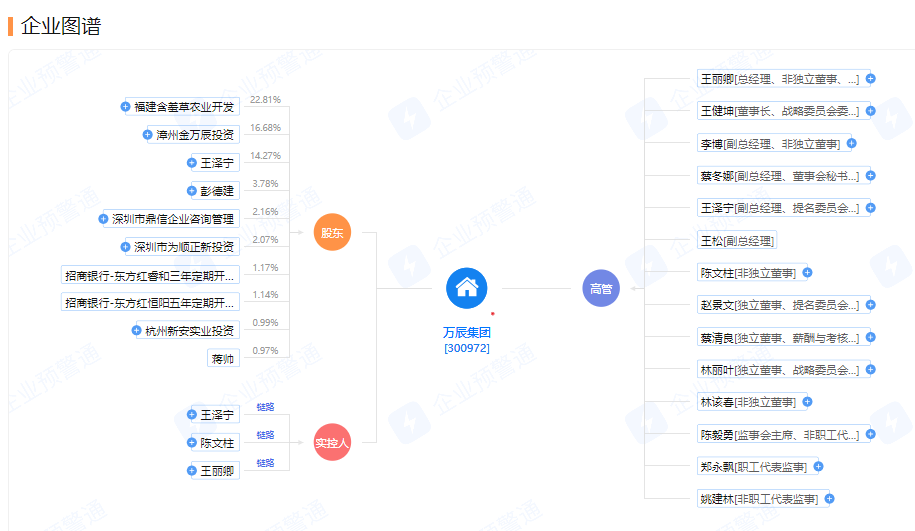 王健坤与王丽卿为姐弟关系,陈文柱与王丽卿为表姐弟关系,可以说万辰集团是一家典型的“家族企业”。