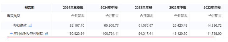 为了应对巨大的支出,公司不得不加大举债力度。2024年三季度末,万辰集团资产负债率超过81%,远高于2022年末的43%;应付账款达到19亿元,较中报增加9亿元。