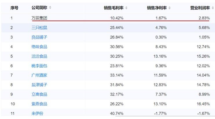 成本高企,通常导致毛利率走低。由于万辰集团专注于零食的采购、销售及仓储物流,这方面需要付出了比其它企业更多的人力和物力成本,所以其量贩零食业务毛利率仅10%左右,远低于一众零食品牌同业。