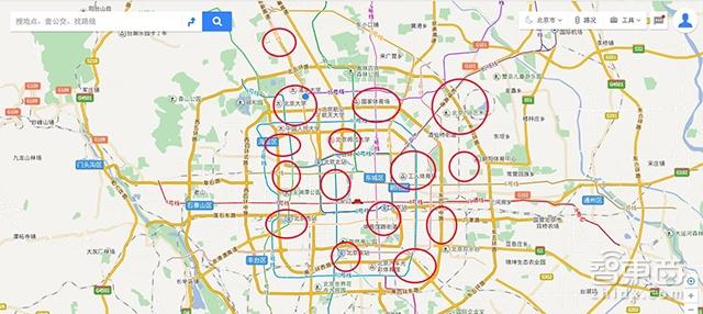 (配图为模拟的运营范围划分,当圆圈越多,其服务就越接近于随地停放)
