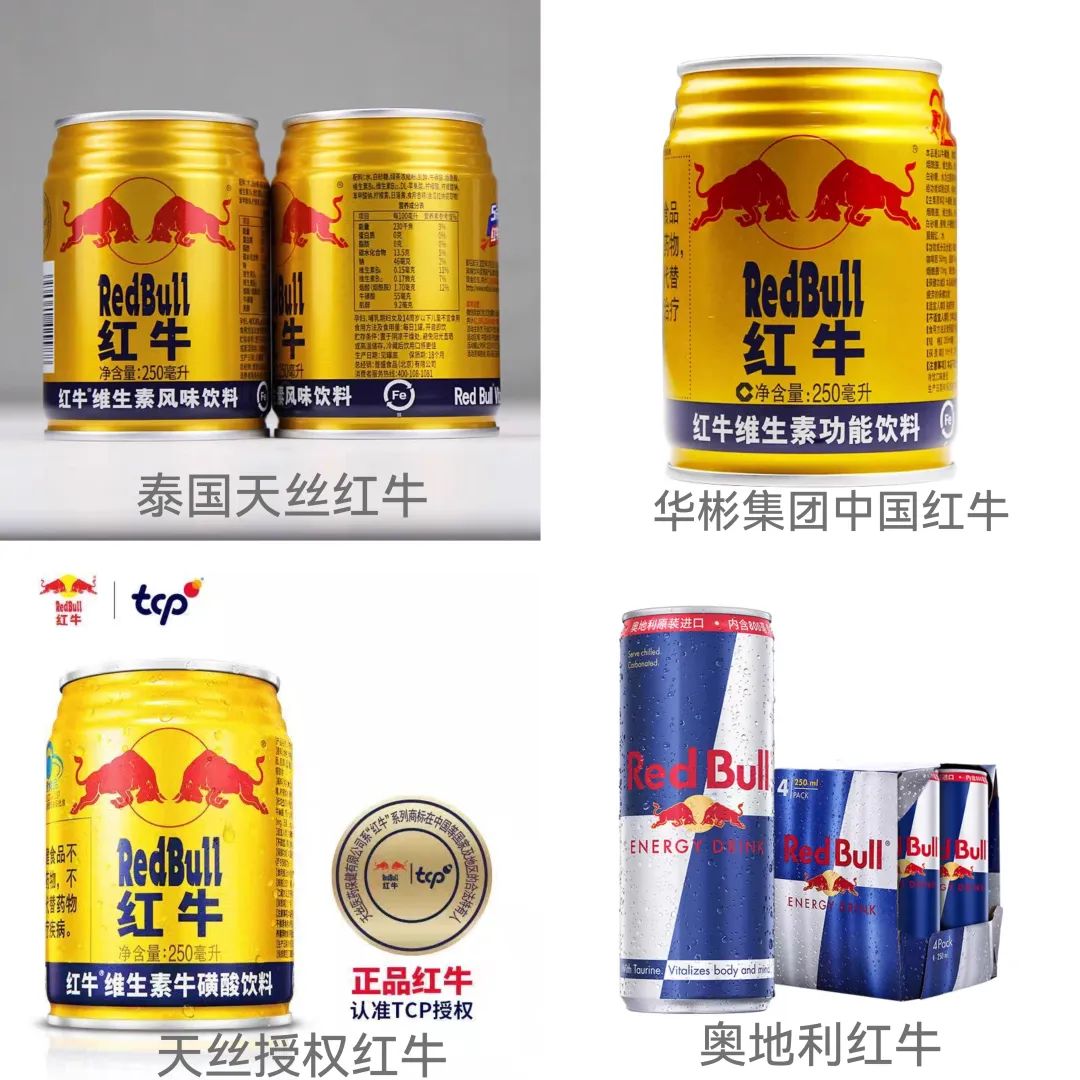4款红牛之中,除了华彬集团旗下的中国红牛外,其余分别是天丝集团的泰国红牛维生素风味饮料、天丝集团授权国内生产的红牛安奈吉饮料(2022年更名为红牛维生素牛磺酸饮料),以及百威中国代理的奥地利红牛。