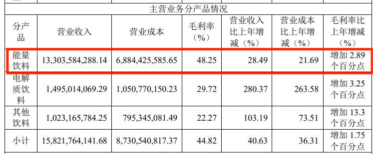 这也为东鹏特饮带来了133.04亿元的营业收入,同比增长28.49%,增速明显快于中国红牛。