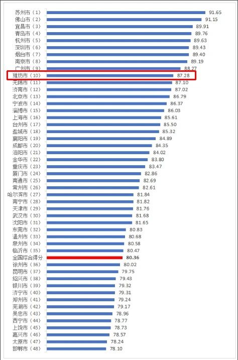原标题:全国百城,潍坊第十!