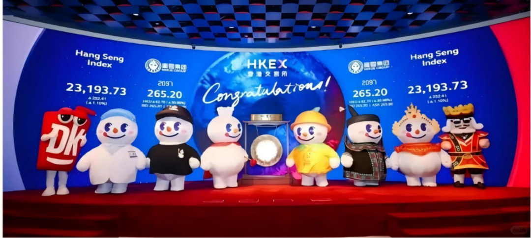 据悉,蜜雪集团每股发行价为202.50港元,募资净额为32.91亿港元。上市当日,其开盘价为262港元/股,较发行价上涨29.38%,对应总市值为987亿港元。值得一提的是,蜜雪冰城透露,募集资金中的12%(3.95亿港元,约合3.68亿元人民币)将用于品牌和IP的建设。
