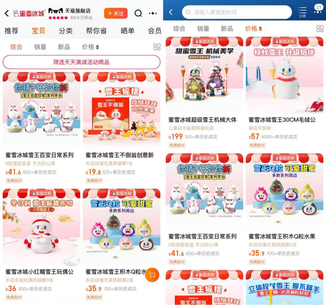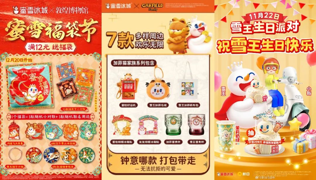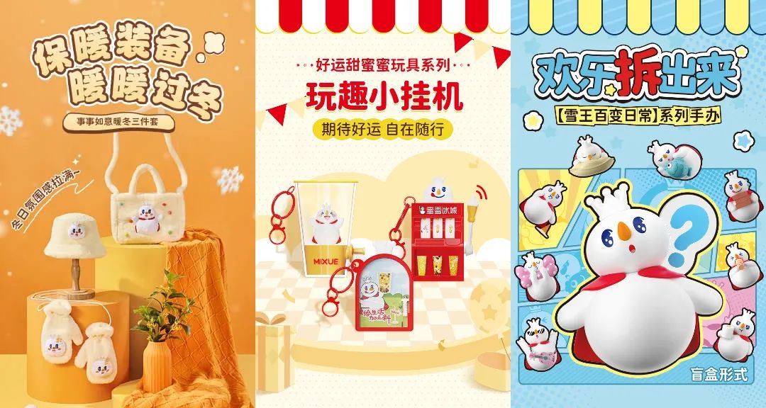 此外,雪王IP通过周边商品(谷子经济)与联名活动强化品牌影响力,但其核心商业模式仍以“平价”为根基。这种策略在提升IP价值的同时,也存在与品牌定位的潜在冲突。