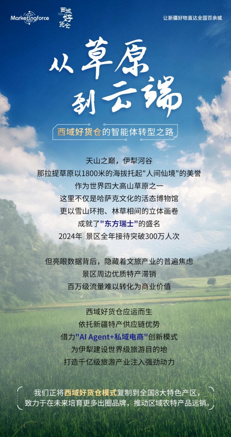 从胡杨林到黄浦江,从马背到云端,这场发生在数字丝路上的创新实践,正在证明:当AI Agent踏上边疆沃土,传统产业也能长出智慧新芽。未来,西域好货仓与Marketingforce将继续深化合作,持续优化运营策略,拓展业务边界,为区域经济发展注入源源不断的活力,让新疆特色好物走进更多消费者的生活,让草原的馈赠突破地理边界,抵达每个向往美好的心灵。