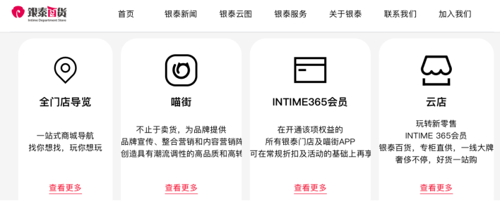 会员制的玩法当然不算新鲜了,但这招还是让银泰数字化会员突破2000万,疫情期间创造出41个销量破千万的爆款单品。双方还进行了门店改造、社群零售、集市零售等多方面尝试,数字化会员一度突破4000万。在喵街APP、“银泰百货”微信小程序、“银泰百货”支付宝小程序等数字化基建的加持下,银泰在场面上似乎不落下风。