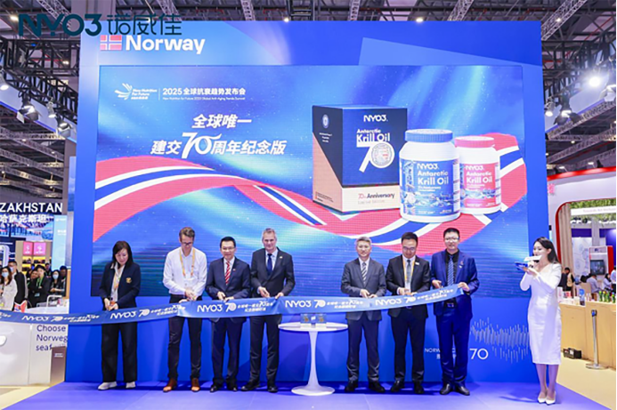 今年,中挪建交 70 周年,挪威国家首次在进博会设立国家馆,10 余个代表品牌共同亮相。其中,NYO3 诺威佳在挪威馆举办的 “新营养 向未来 2025 全球抗衰趋势发布会” 格外引人注目。
