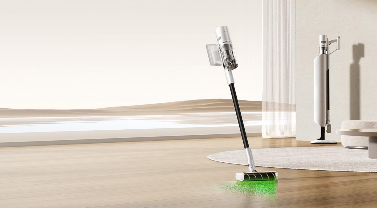 传统吸尘器因单向限制,无法横向清理狭窄角落的灰尘,该吸尘器首创了FreeGlide技术,首次将万向双滚地刷与绿光显尘相结合,双滚前吸后拢,万向横向清扫,无论是桌腿环绕、狭窄角落还是低矮家具底部,都可实现清洁无死角,做到双倍洁净效果,高效应对地板灰尘。