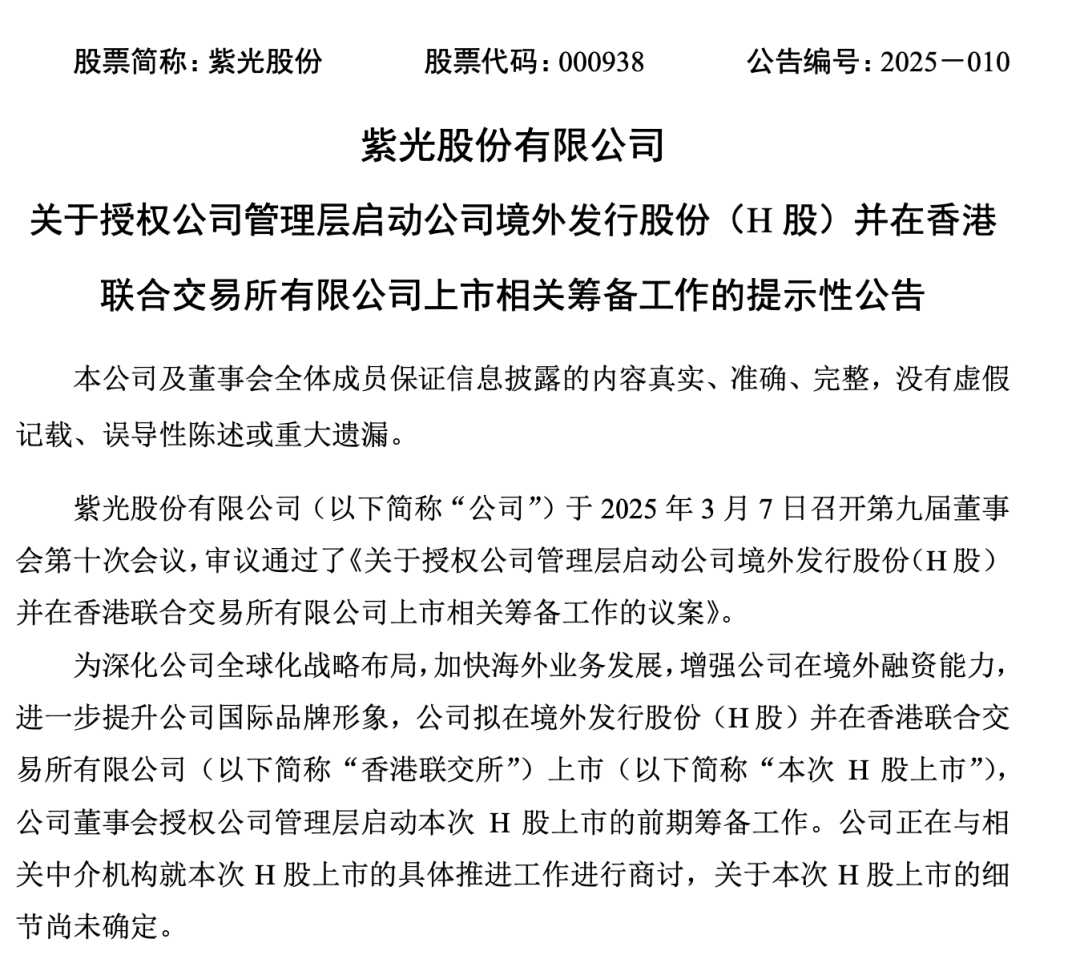 近日,A股上市26年的“国内算力龙头”——紫光股份(000938.SZ)宣布拟在境外发行股份(H股)并在港交所上市。据新媒体“独角兽早知道”报道,紫光股份已选择法国巴黎银行、招银国际和中信建投安排在香港第二上市计划,可能通过IPO筹集约10亿美元。