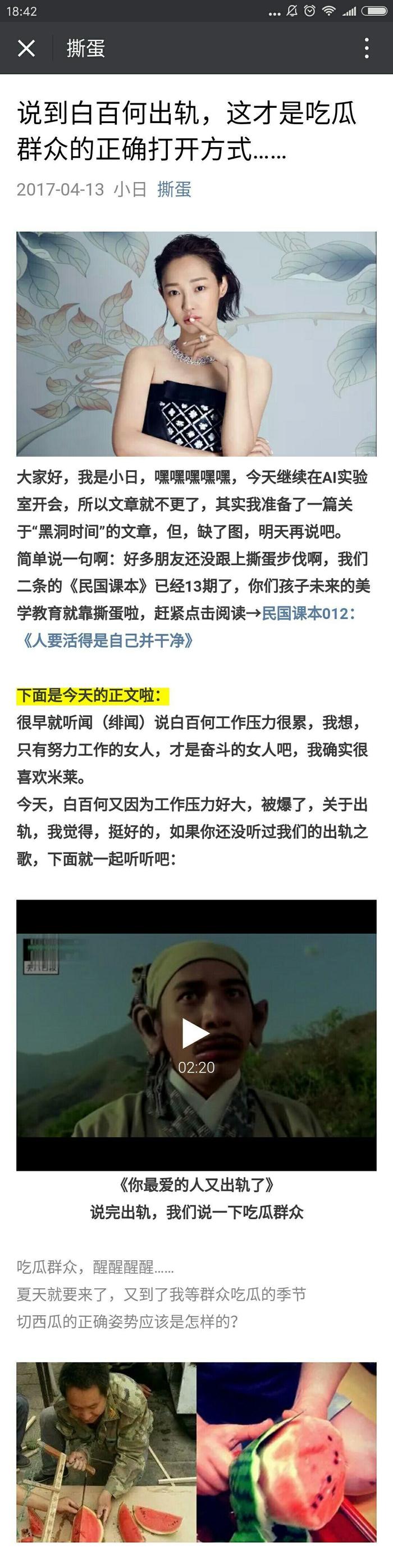 撕蛋:《说到白百何出轨,这才是吃瓜群众的正确打开方式……》