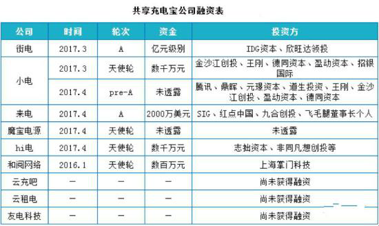 从「独角兽捕手」朱啸虎、明星天使投资人王刚联手投资「小电科技」,到投资界的「老大哥」IDG 入局「街电科技」,再到 SIG、红点创投、九合创投合投「来电科技」2000 万美金创下行业迄今最大单笔融资额,再到互联网巨头腾讯入局续上「小电科技」Pre-A 轮,前后不过 10 天时间,5笔融资,超20家机构入局,融资金额逼近3亿元。这么低调的共享充电宝就这样莫名其妙的火了,而且各企业之间局势是愈演愈烈。
