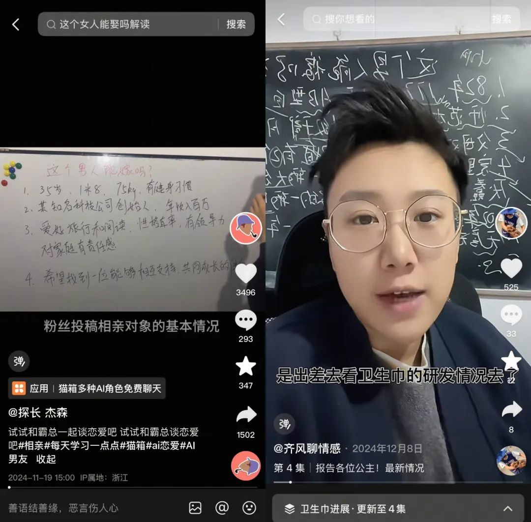 不过就“相亲分析”这个去年出圈的垂类赛道而言,生意和内容流量正在同步退潮。@军师无念的橱窗里不再有课程链接,@探长 杰森今年还没有更新“这个男人能嫁吗”系列,@齐风聊情感 的卫生巾进展也无后续。
