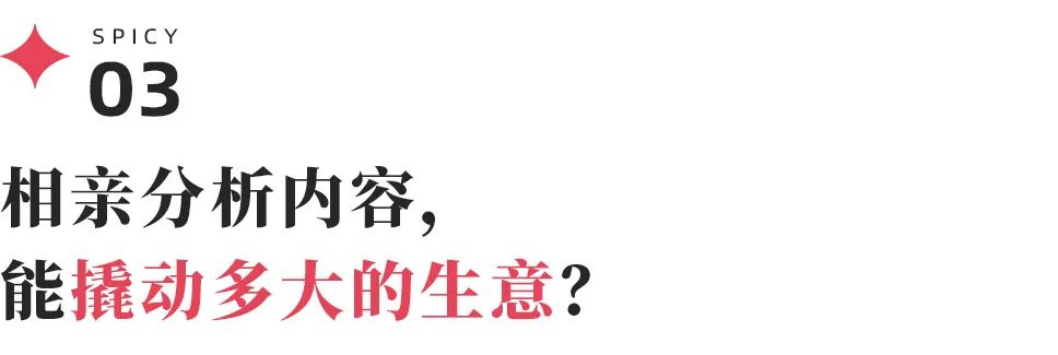 相比其他赛道的博主,从相亲分析赛道冲出来的博主们,有相对清晰的变现路径,且转化效率也会更快。