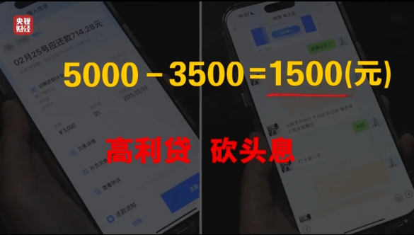 借款人洪先生电子签走的是借贷宝,他从该平台借5000元,到手3500元,7天内还款,短短7天,就要额外还1500利息。以此计算,实际年化利率高达5959.18%。洪先生这才意识到,自己遭遇了赤裸裸的高利贷和砍头息!